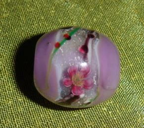 | 作成日2005年2月8日 佐竹ガラス11色、銀箔 3mmシャフト使用 22 mm x approx. 18 mm dia. |